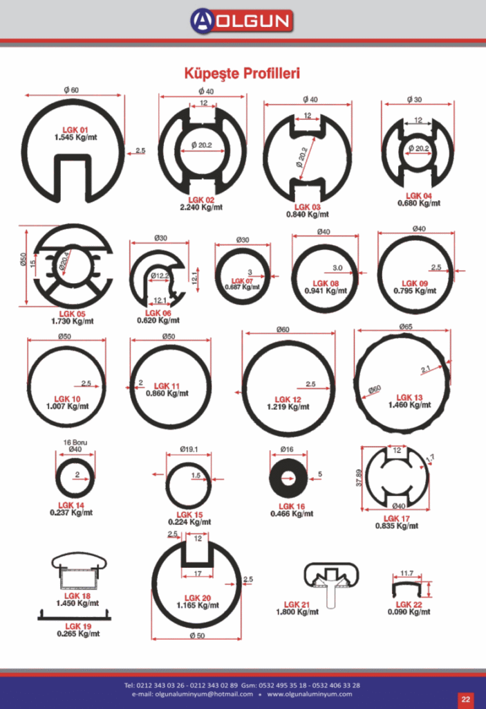 - Yüksek Dayanıklılık: Dış hava koşullarına ve neme karşı üstün direnç gösteren eloksal veya RAL boyalı yüzeyler.
