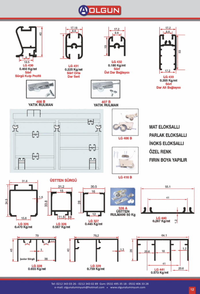 - Yüzey Bitişi: Mat eloksal, parlak ve RAL renk seçenekleriyle mobilyalarınıza uyum sağlar.